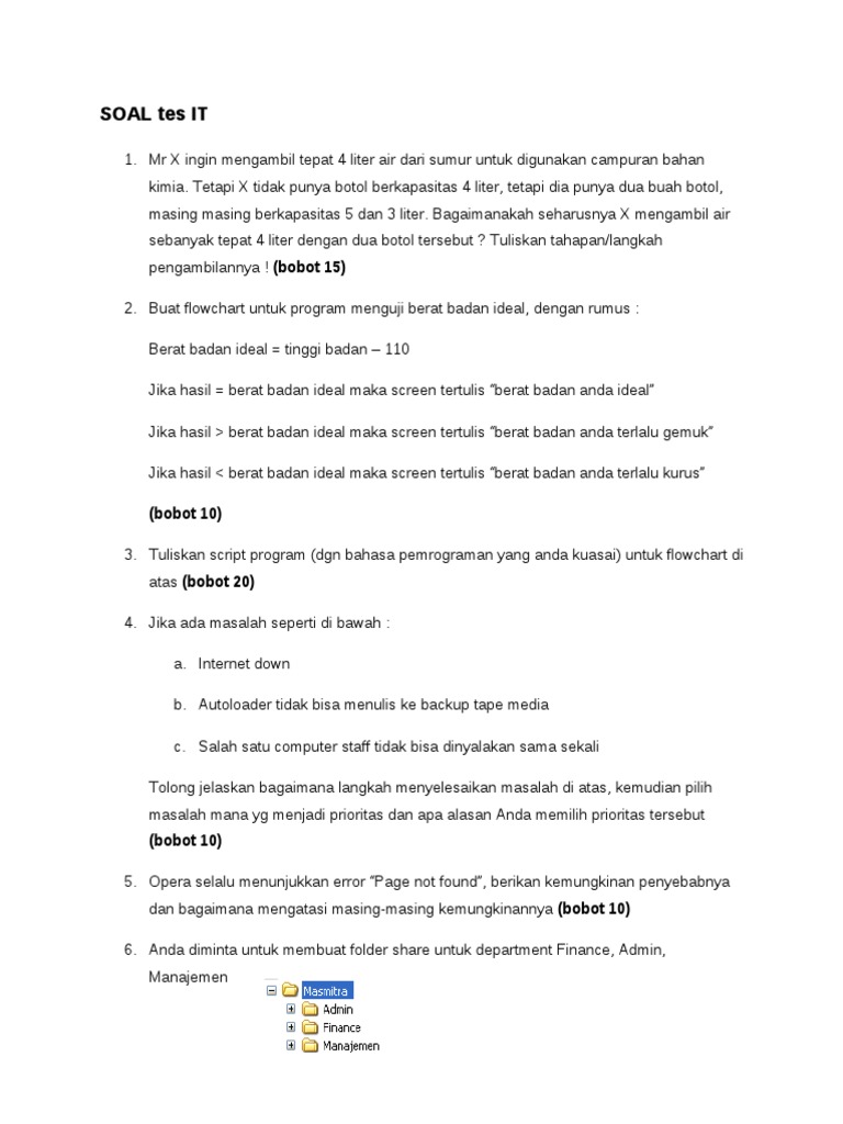 08/05/2016 (10/05/2019) sebelum menghadiri tes wawancara kerja, anda perlu melakukan berbagai persiapan supaya tes ini bisa berjalan lancar. Contoh soal tes tertulis bagian administrasi | setelah kita mendapat konfimasi dari hrd setelah kita memasukan sebuah lamaran kerja ke dalam sebuah perusahaan, maka hal berikutnya yang akan kita laksakan sebelum interview adalah tes tulis. Single images and dimension of tes tulis staff adm soal tes finance staff ilmusosial id tah Jalur tes tulis adalah proses penerimaan siswa baru mbi amanatul ummah yang didasarkan dari hasil tes tulis meliputi kemampuan mipa (matematika, biologi, fisika), bahasa inggris dan tes potensi akademik. Tes tulis staff adm :